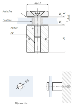Bodový úchyt s nástavcem, sklo 8 - 12 mm