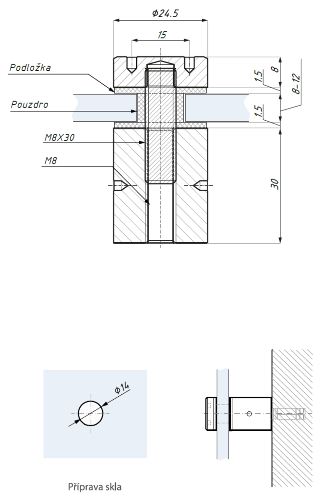 Bodový úchyt s nástavcem, sklo 8 - 12 mm