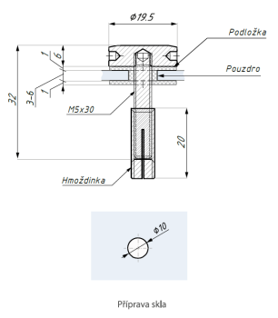 Bodový úchyt s hmoždinkou pro zrcadlo nebo skleněný panel