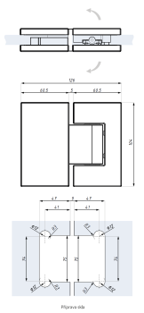 Samozavírací regulovatelný pružinový závěs, sklo - sklo 180°, kartáčovaná nerez