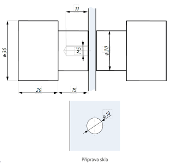 Skleněný dveřní úchyt, o30 mm, kartáčovaná nerez
