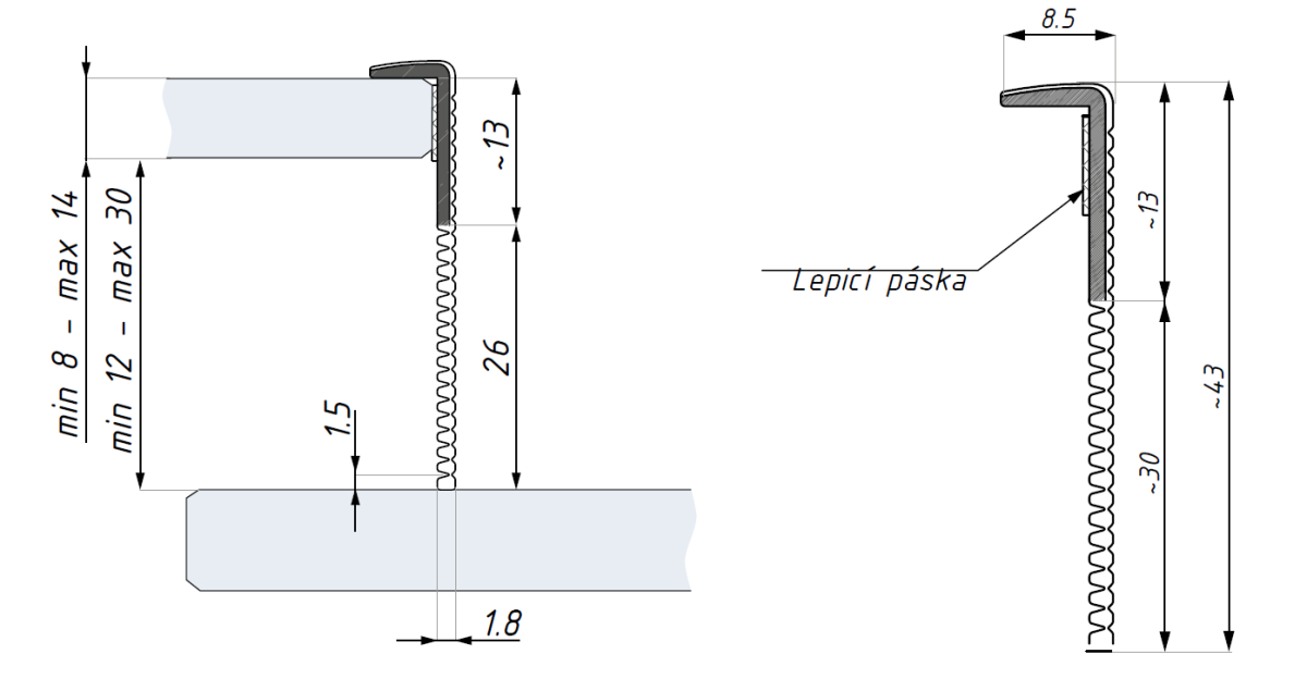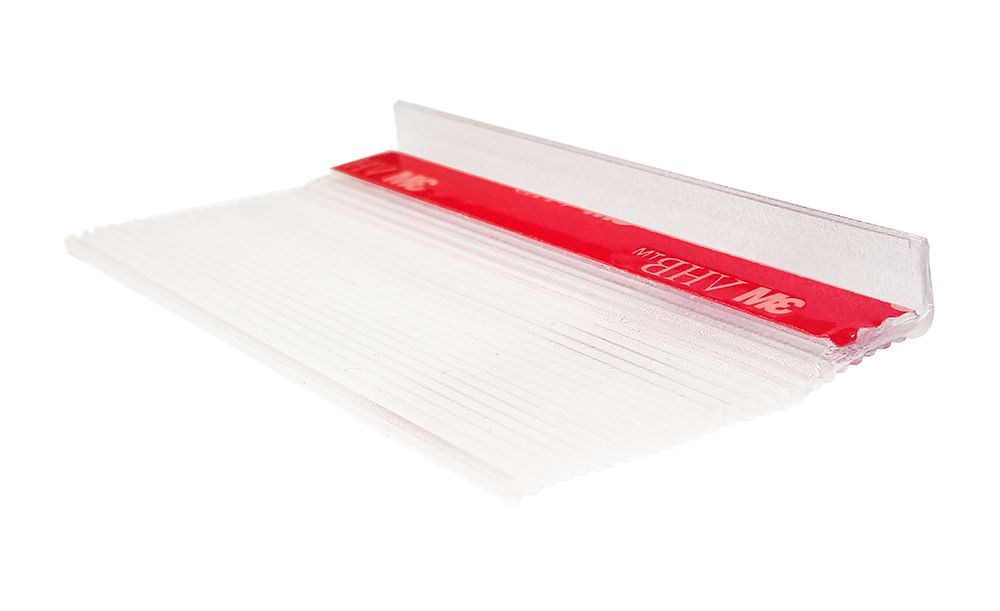 Nalepovací těsnění na hranu skla pro posuvné dveře, délka 3000 mm, čirý plast