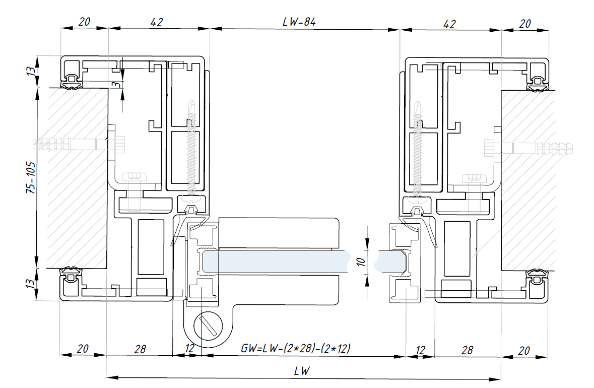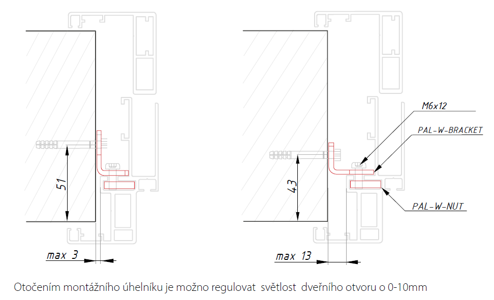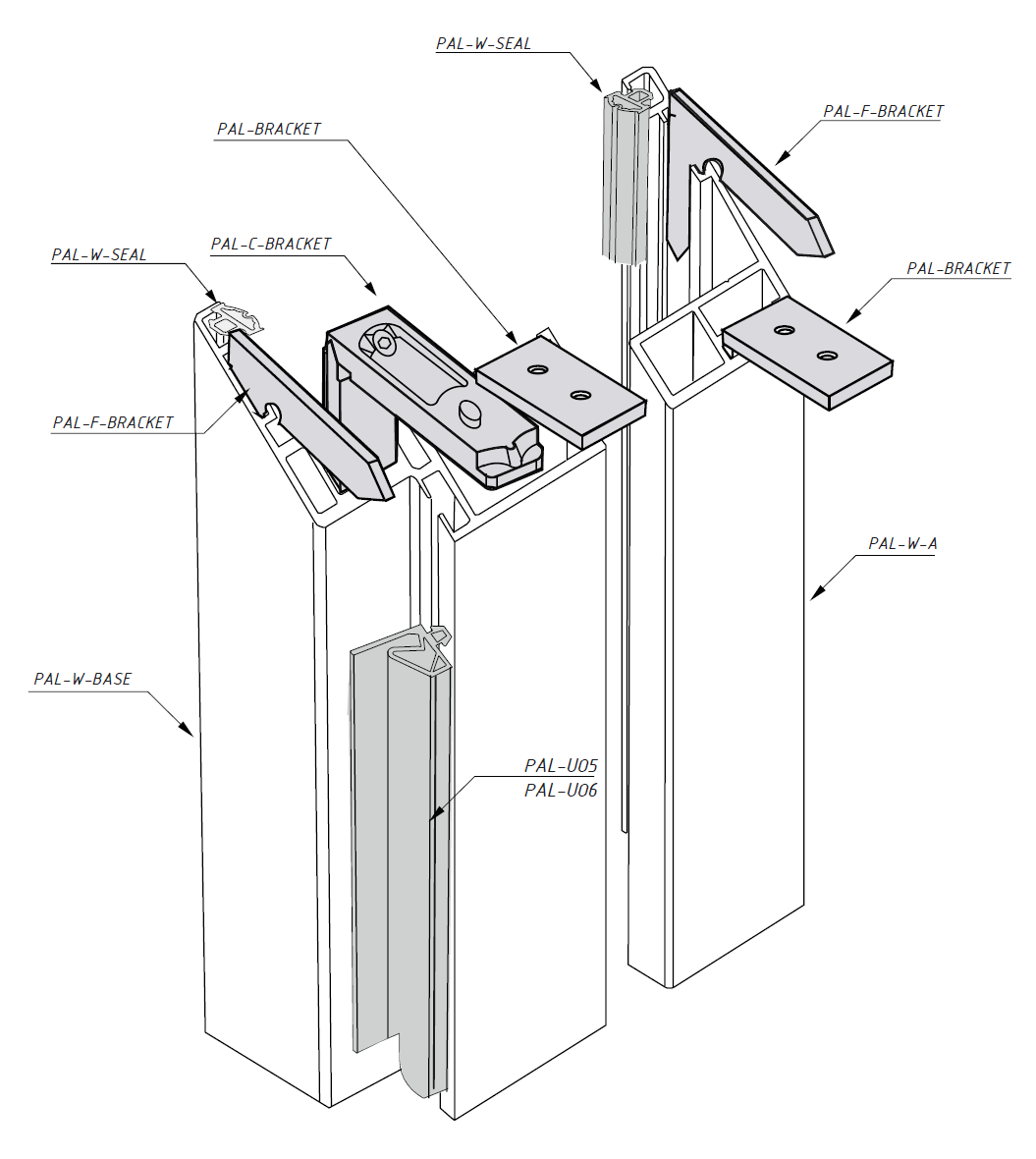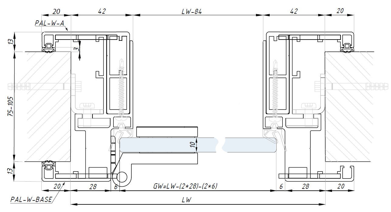 Série PALERMO WALL představuje hliníkovou obložkovou dveřní zárubneň včetně těsnění, montážních úhelníků a dalšího nezbytného příslušenství pro jednostranně otvíravé dveře.