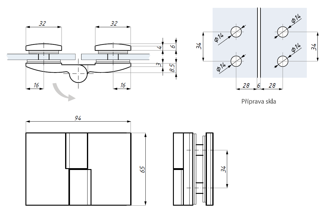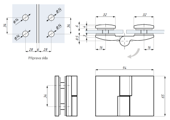 Zvedací závěs - levý (sklo - sklo 180°), kartáčovaný chrom