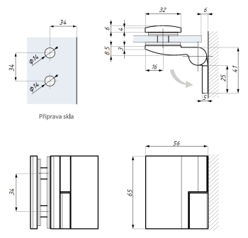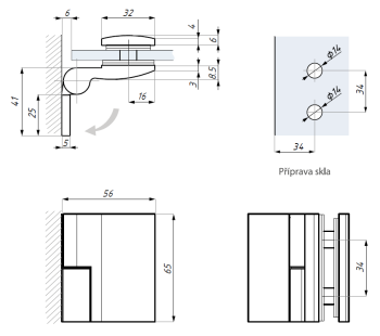 Zvedací závěs s bočním kotvením - levý (sklo - zeď 90°), lesklý chrom