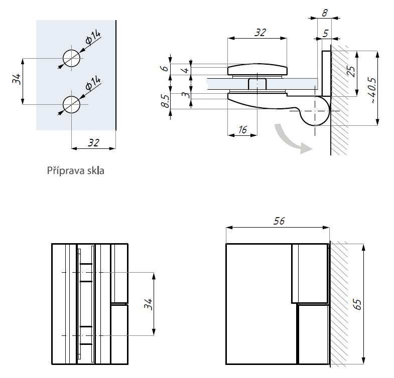 Zvedací závěs - levý (sklo - zeď 90°), RAL
