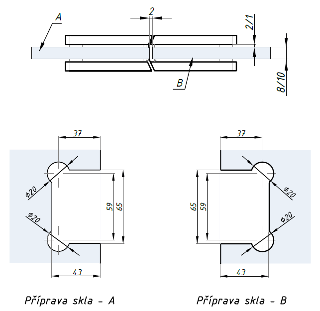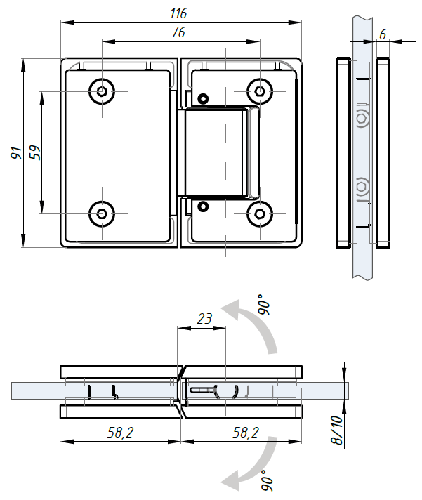 Regulovatelný závěs s aretací ±90° (sklo - sklo 180°), lesklý chrom