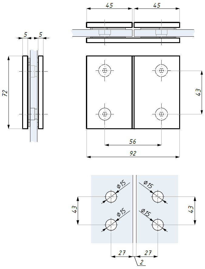 Standardní bodový úchyt (sklo - sklo 180°), H=72 mm, lesklý chrom