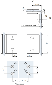 Standardní bodový úchyt (sklo - sklo 90°), H=72 mm, lesklý chrom