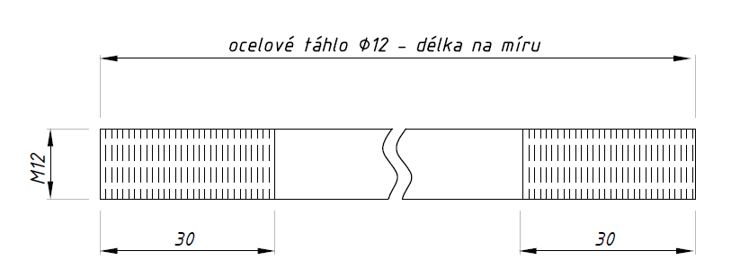 Táhlo M12, délka 710 mm, kartáčovaná nerez